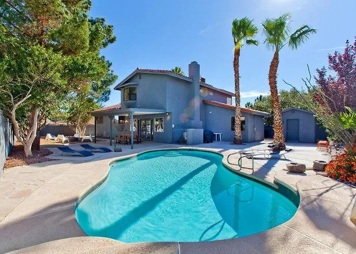 The 3-bedroom Bright, Modern 4Br With Beautiful Backyard & Pool! Villa Las Vegas offers proximity to nearby tourist spots, such as Desert Breeze Park on Spring Mountain and Durango, situated 3.2 km away.